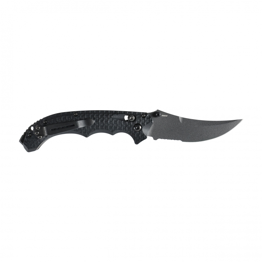 The Benchmade 865SBK Mini Bedlam is a knife that inspires awe at first glance. The aggressive silhouette, curved Scimitar-type blade and tactical black color leave no doubt - this is a tool made for special tasks. And yet - compact, handy, ready to accompany you every day, regardless of the challenges. With an unfolded length of 21.9 cm and a weight of just 139 g, the Mini Bedlam combines the power of a full-size knife with the mobility of an EDC, giving you a sense of readiness wherever you are.
