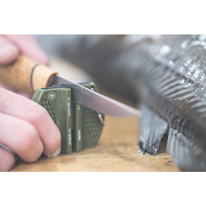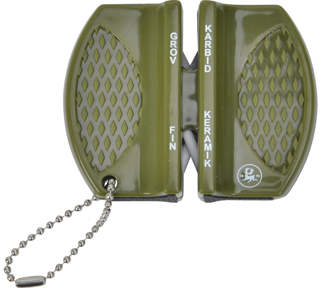 Brusletto Knife Sharpener är mycket lätt att använda och ger en bra och skärpt egg. Å ena sidan har knivsliparen volframkarbid tegelstenar för grov slipning och å andra sidan finns keramiska stavar för fin slipning. Liten och behändig storlek på en knivslipare som ger vassa blad och kan användas på alla typer av blad så länge bladet är metall och det inte finns någon tärning på bladet