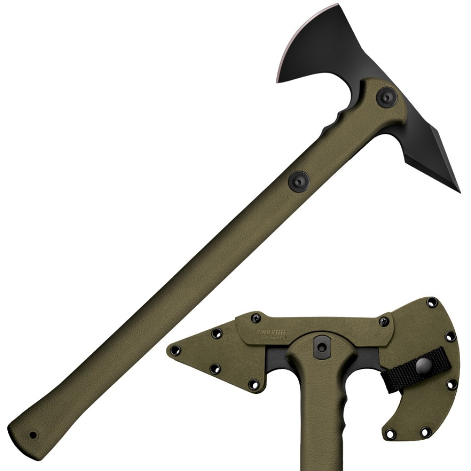 Tomahawk från Cold Steel med formgivning inspirerad av skyttegravar och andra trånga stridsutrymmen. Dess långa egg och aggressiva spets gör den väl lämpad som kastyxa, och spetsen är även effektiv för krokning.