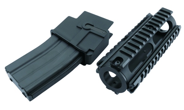 Detta "bolt-on" kit till din A5a innehåller ett rälssystem, magasin, o-ring för att hålla shroudet bra på plats på pipan och ett R.I.S. tillbehörsfäste. Från Milsig.