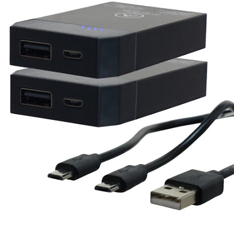 – Ingår 2 laddningsbara 3000mAh Power Bank-batterier, vilka kan laddas även med en vanlig micro-USB laddare.