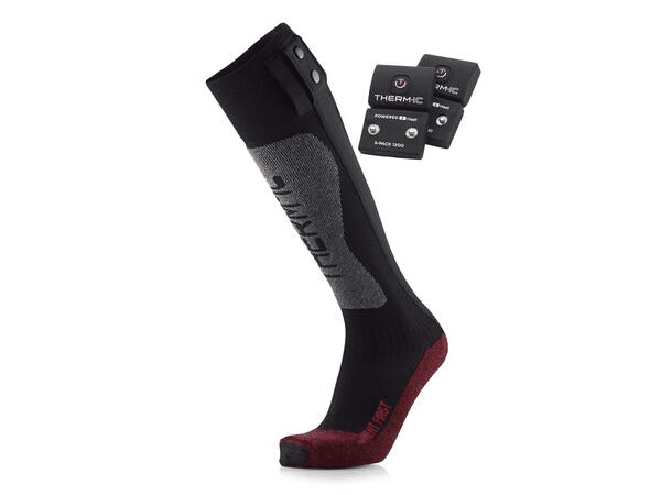 Skidstrumpor med Therm-ic's välkända värmefördelingssystem med high-tech material och patenterade funktioner. Impulse Control stimulerar blodcirkulationen och de 3 värmeinställningarna regleras enkelt med knappen på batteriet som fästes med trycknappar längst upp på strumpans utsida. Med sin anatomiska passform sitter strumpan perfekt på foten, och garanterar kontinuerlig värme under vinterns kalla dagar.