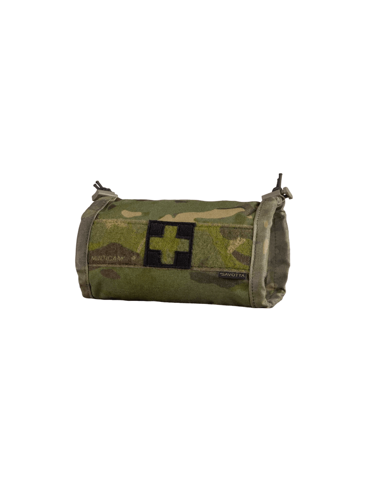 Horizontally aligned PALS and belt attachable mount for our S-IFAK insert. Tubular design, open on both ends, with adjustable elastic cord retention.