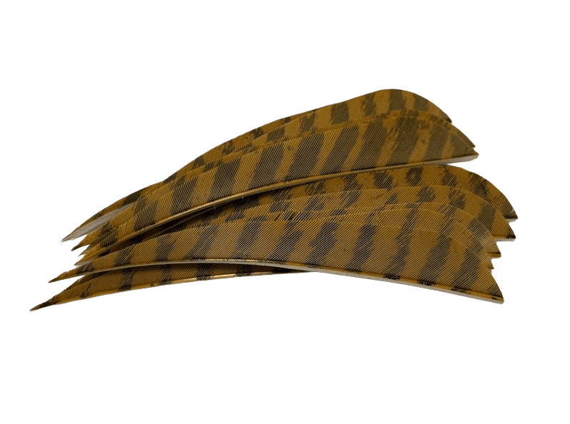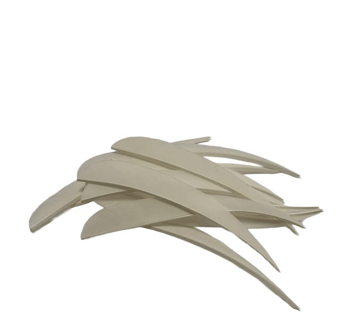 5″ Left Wing Parabolic or Round Back Shape. This feather will average 16.5 millimeters tall at its highest point. Its average weight will be 3.63 grains each and is used for both hunting arrows and target arrows. This feather can be used on all types of arrow shaft materials. Is best applied with Gateway Feather’s G1 Glue and can be used by either a right handed or left handed archer.