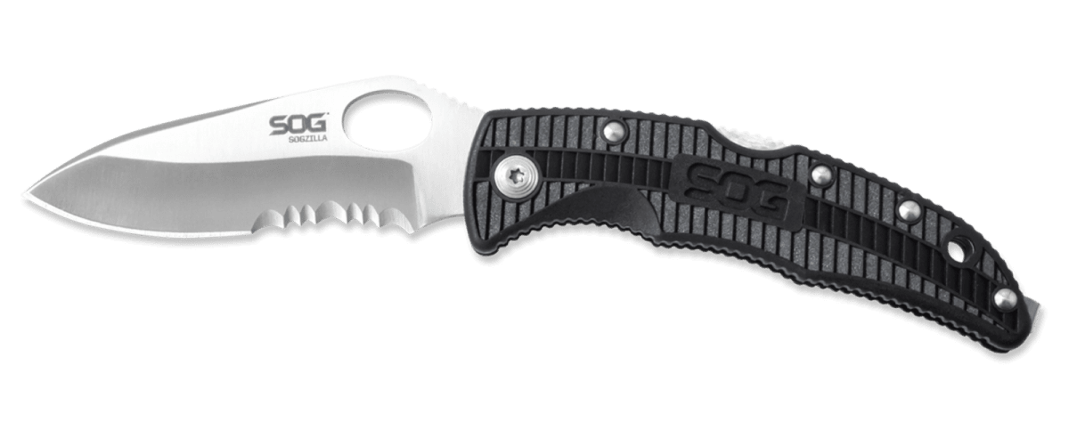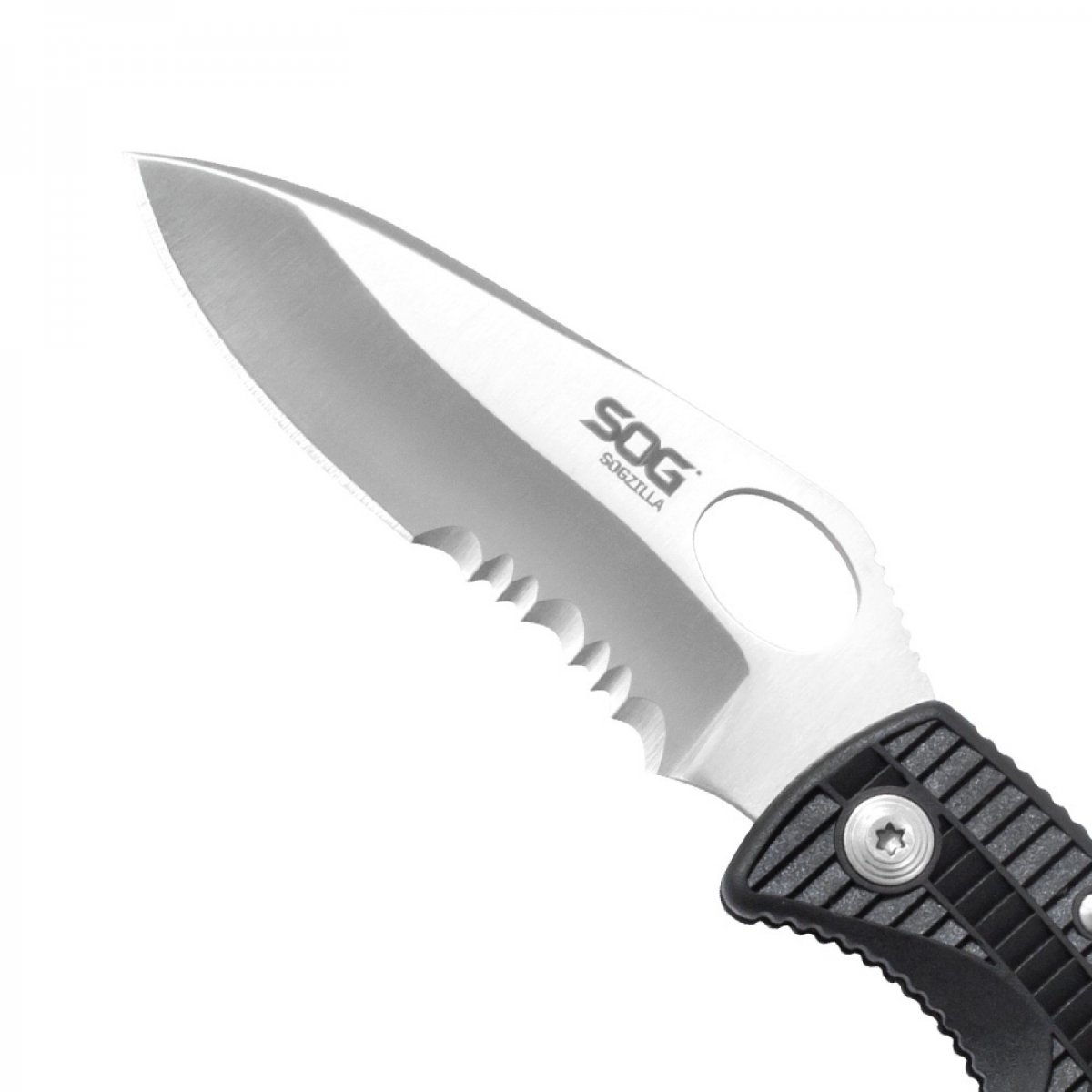 In devising this line that includes several sizes and blade shapes we wanted to make the Zilla distinctive. Zilla is fast, you wouldn't want to try and outrun him! The grip is a dual directional prehistoric armor plate and the big-bodied blade features a new opening shape... the likes of which has never been seen before.