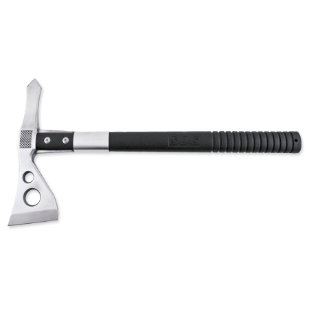 SOG Tactical Tomahawk är en extrem evolution av originalet Vietnam Tomahawk som i sig ansågs vara ett för sin tid ovanligt vapen. Tomahawken har ett huvud i rostfritt 420-stål som monterats på ett glasfiberförstärkt skaft med kraftiga boltar och metallring för ökad stabilitet. Mönstringen på huvudets hammarsida ger precis placering vid hamring.
