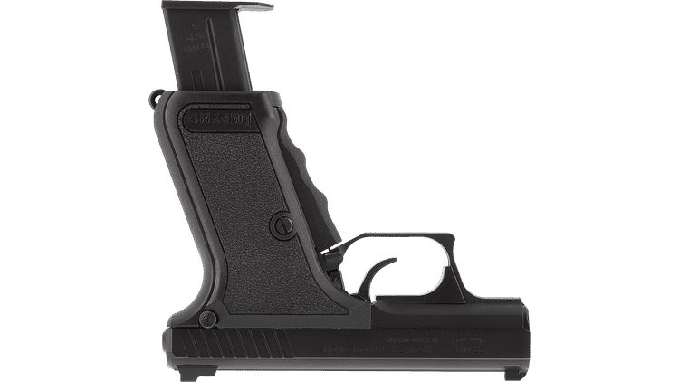 - Autentiskt system med spännarm på greppet, likt den riktiga pistolen