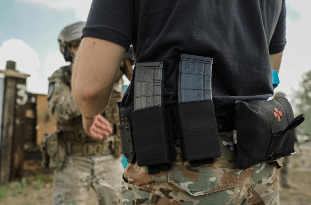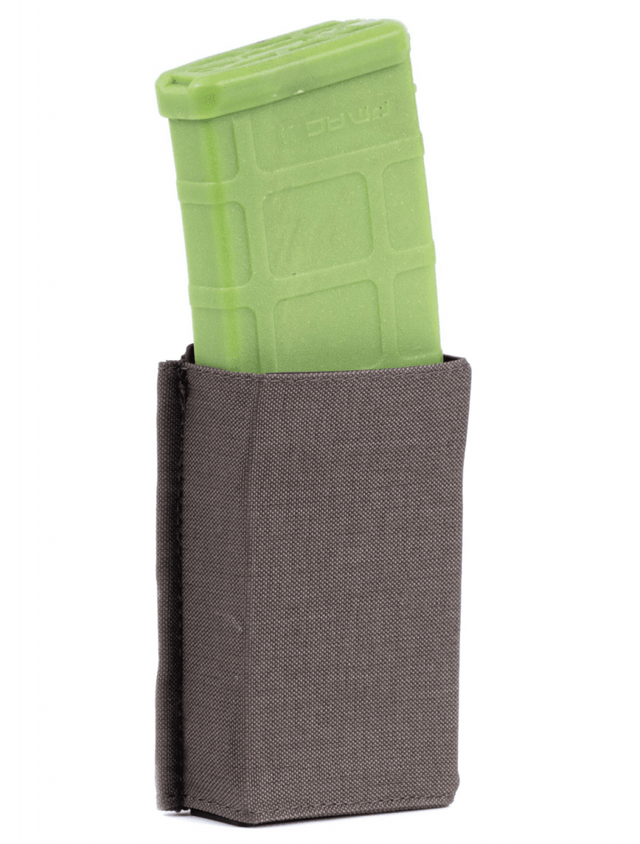 - Låg profil. Konstruktionen saknar elastiska snören, vilket minskar risken att fastna vid vapenhantering – särskilt viktigt för frontmonterade fickor