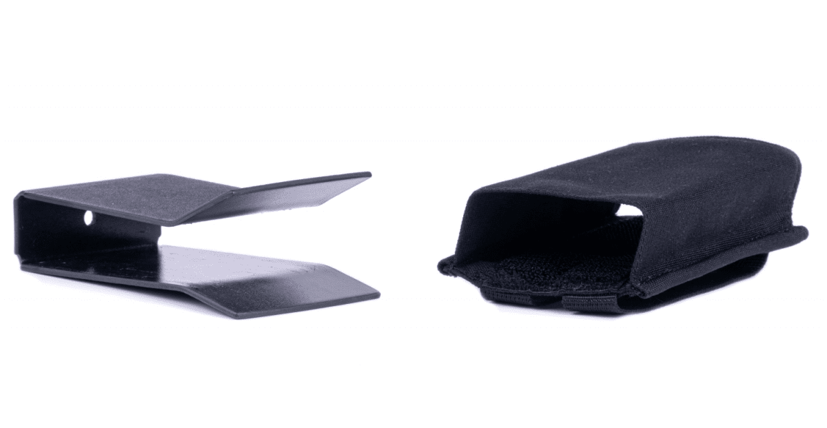 - Stöttålig. Kydexinlägget är flexibelt och motståndskraftigt mot stötar, även om du faller på hårda underlag med fickan monterad på kroppsskyddet